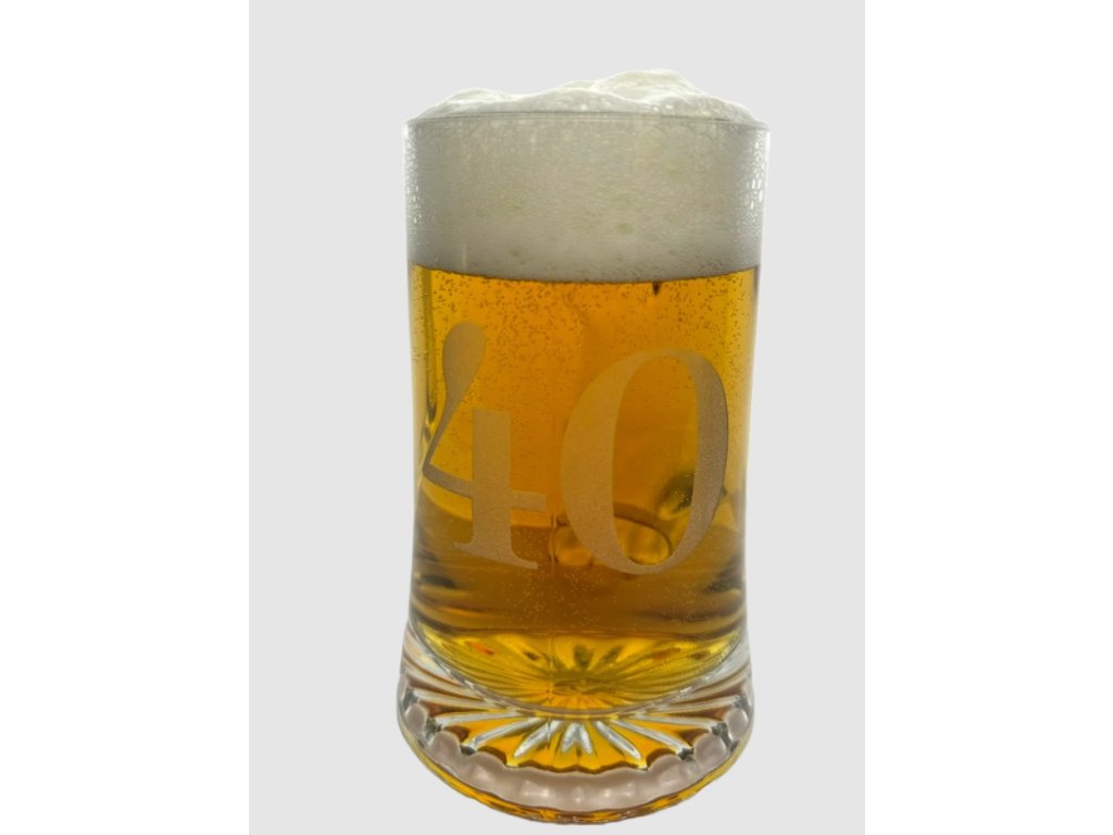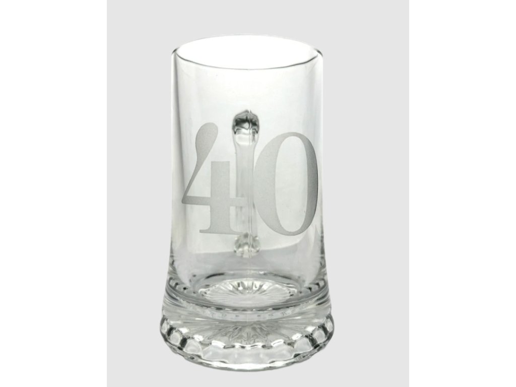 Originální půllitr z čirého skla s pískovaným číslem je výjimečný dárkový kousek k významnému životnímu jubileu. Pískované číslo připomene, k jaké příležitosti sklenice patří.