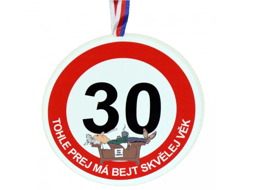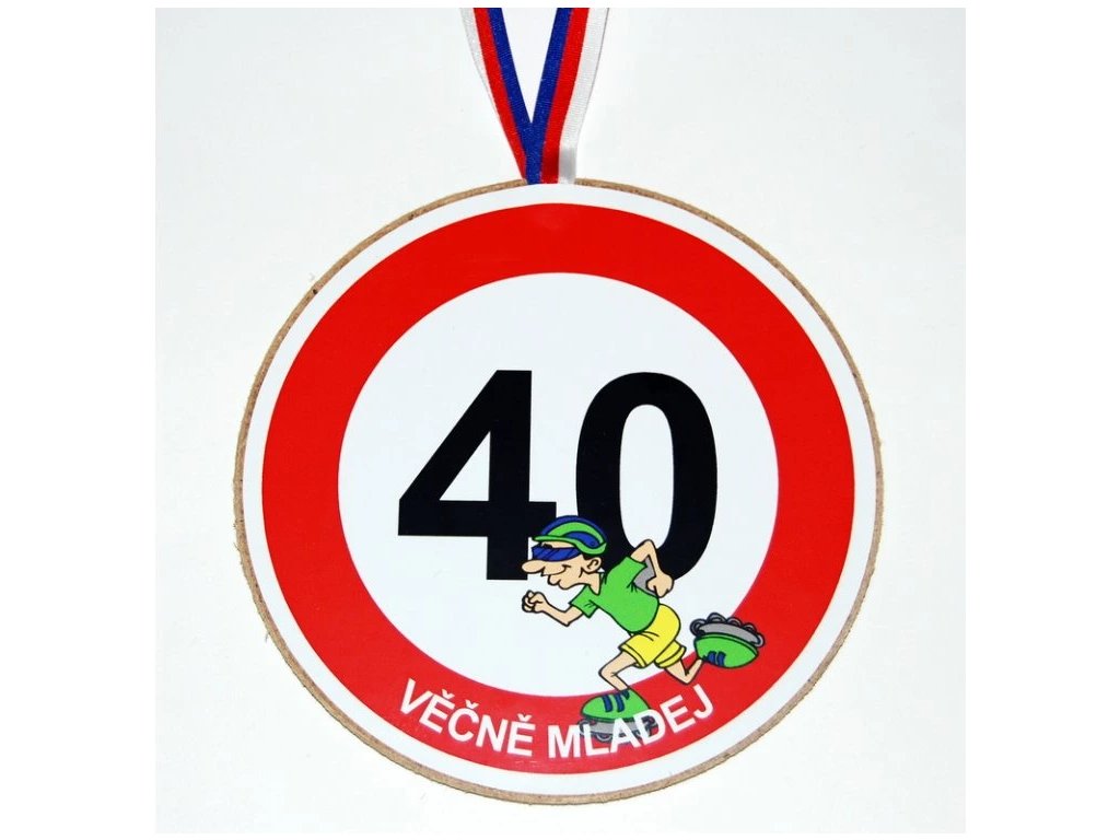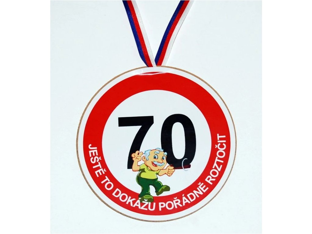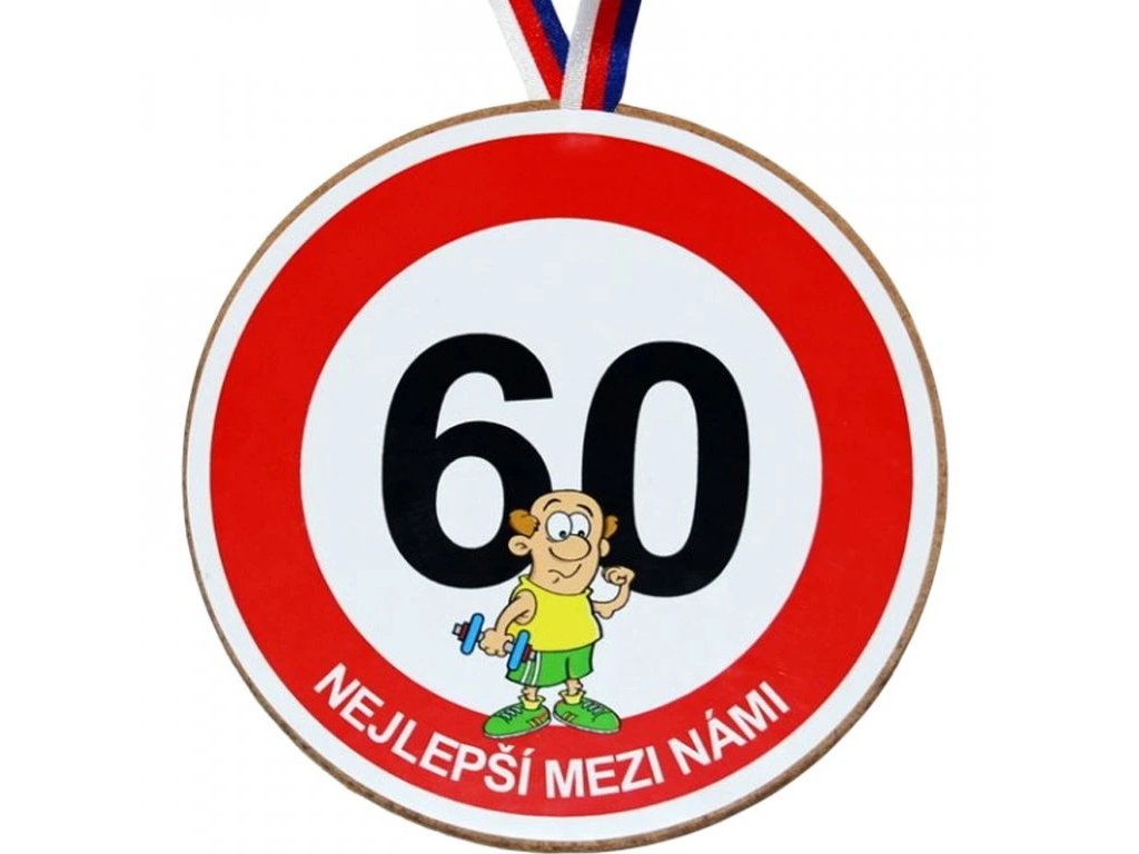 Na obrázku je typický oslavenec, který si zaslouží medaili a citát odpovídající jeho aktuálnímu věku.