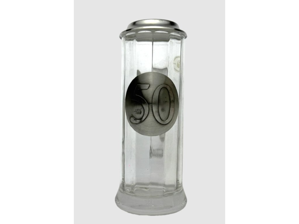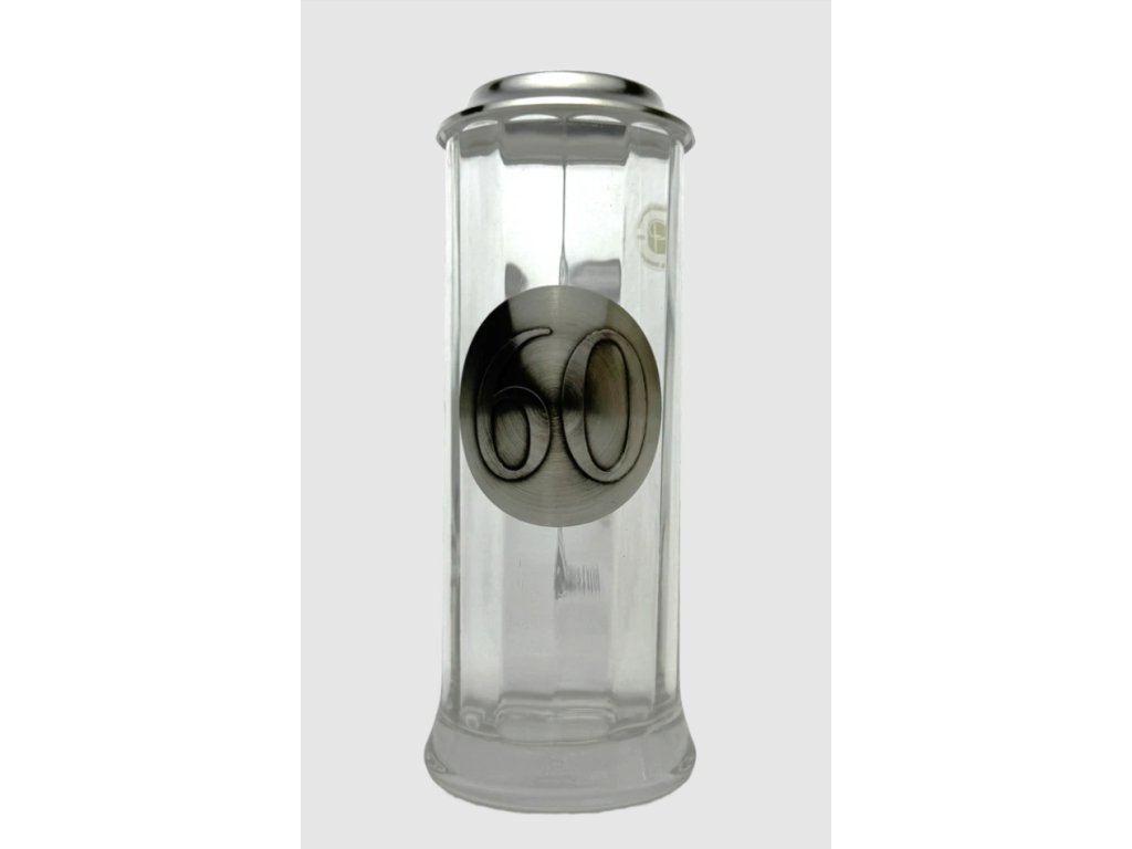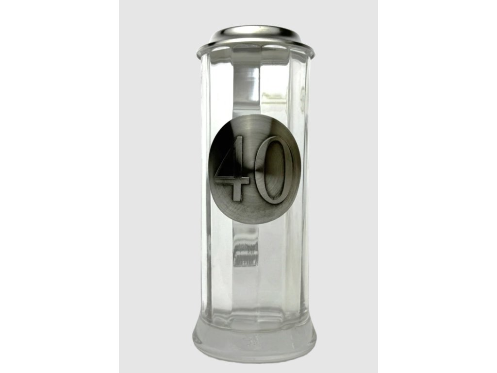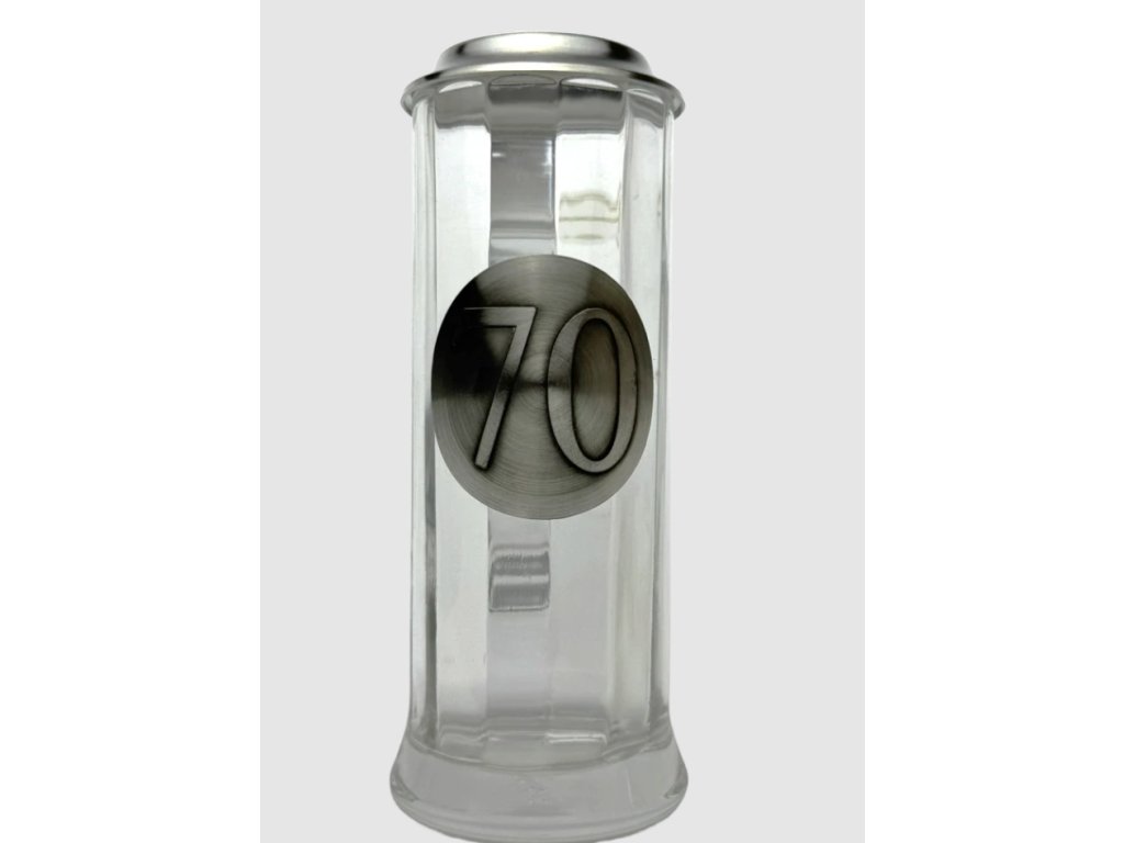 Půllitr k narozeninám s číslem věku – skleněný s cínovým víčkem, vysoký